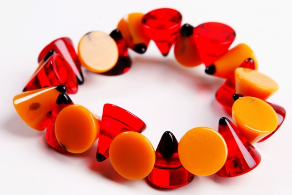 B0192 – RESIN BRACELET LIQUORICE SQUARES AND BEADS ON ELASTIC “PATRICIA”