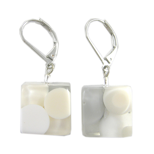 RESIN EARRINGS SPOTTED CUBES SHORT